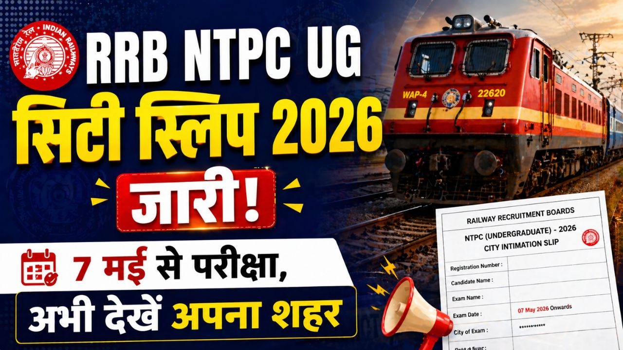 रेलवे भर्ती बोर्ड (RRB) ने आखिरकार NTPC Undergraduate 2026 का सिटी इंटिमेशन स्लिप जारी कर दिया है। अगर आप भी उन लाखों कैंडिडेट्स में से एक हैं जो महीनों से इस परीक्षा का इंतज़ार कर रहे थे, तो अब फटाफट अपने रजिस्ट्रेशन नंबर और डेट ऑफ बर्थ से लॉगिन करो और देखो परीक्षा किस शहर में है, कौन सी डेट है और कौन सा शिफ्ट।