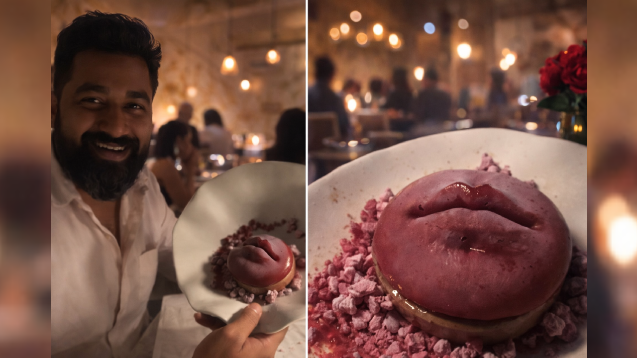 सोशल मीडिया पर तेजी से वायरल हो रहा यह viral restaurant video पुणे के एक रेस्टोरेंट का बताया जा रहा है, जहां एक कपल ने मेन्यू में “Chef’s Kiss” नाम की मिठाई ऑर्डर की। अब नाम सुनकर उम्मीद तो यही होगी कि कुछ शानदार, टेस्टी और शायद इंस्टाग्राम-फ्रेंडली डिश आएगी, लेकिन जैसे ही प्लेट टेबल पर आई, सामने गुलाबी इंसानी होंठ जैसे दिखने वाला डेजर्ट रखा था, और यकीन मानिए, ये वो मोमेंट था जब हंसी रोकना नामुमकिन हो गया।