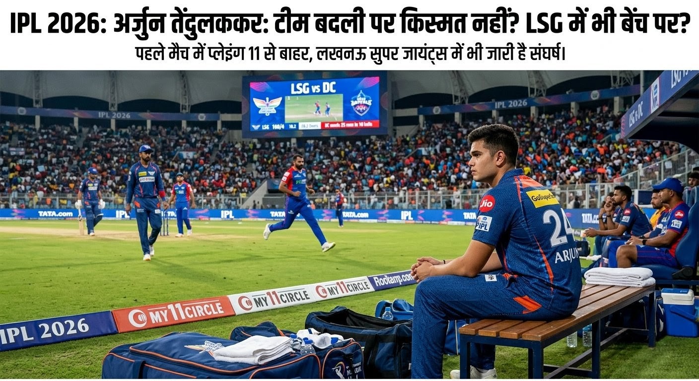IPL 2026 अर्जुन तेंदुलकर: IPL 2026 से अर्जुन तेंदुलकर को कई उम्मीदें थी, उन्होंने मुंबई इंडियंस छोड़कर लखनऊ सुपर जायंट्स में शामिल होने का निर्णय तो ले लिया। उन्हें उम्मीद थी कि उन्हें यहां पर मौका जरूर मिलेगा, लेकिन LSG और DC के बीच होने वाले पहले मुकाबले में ही उन्हें प्लेइंग 11 से बाहर रख दिया गया। बल्कि इस बार तो उन्हें बेंच पर भी जगह नहीं मिली। ऐसे में सवाल यह उठता है कि क्या LSG में उनका सफर और भी मुश्किल होने वाला है? और यदि ऐसा है तो आखिर उनका एक्शन प्लान क्या होगा?