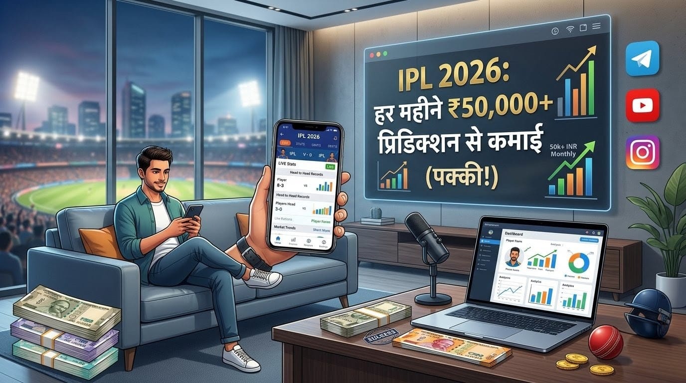 जी हां आजकल IPL में असली पैसा मैदान में नहीं बल्कि अपने घर के सोफा पर बैठकर कमाया जा रहा है। टेलीग्राम चैनल, यूट्यूब वीडियो, प्रीमियम प्रिडिक्शन सर्विस के जरिए। आज हम आपको वही तरीके बताएंगे जहां बिना रिस्क के लिए आप हर महीने हजारों से लाखों रुपये कमा सकते हैं।