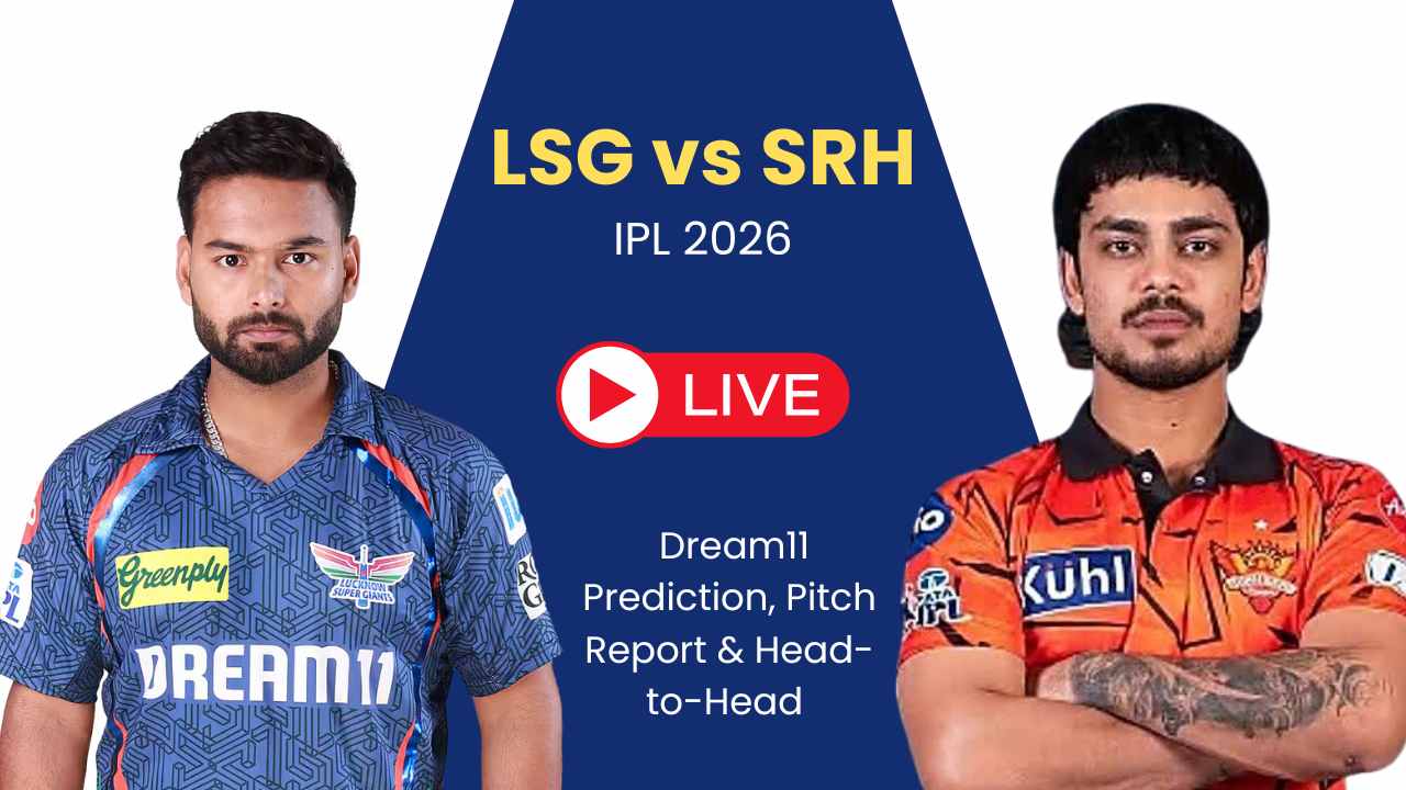 LSG vs SRH: इंडियन प्रीमियर लीग 2026 का 10वां मैच सनराइजर्स हैदराबाद (SRH) और लखनऊ सुपर जायंट्स (LSG) के बीच खेला जाएगा। यह मैच रविवार, 5 अप्रैल 2026 को दोपहर 3:30 बजे हैदराबाद के राजीव गांधी इंटरनेशनल क्रिकेट स्टेडियम में खेला जाएगा। यह मैच दोनों टीमों के लिए बहुत महत्वपूर्ण है। आइए मैच के विवरण, पिच रिपोर्ट, मौसम के पूर्वानुमान, Dream11 टीम के सुझाव और मैच के अनुमानों पर एक नज़र डालते हैं।