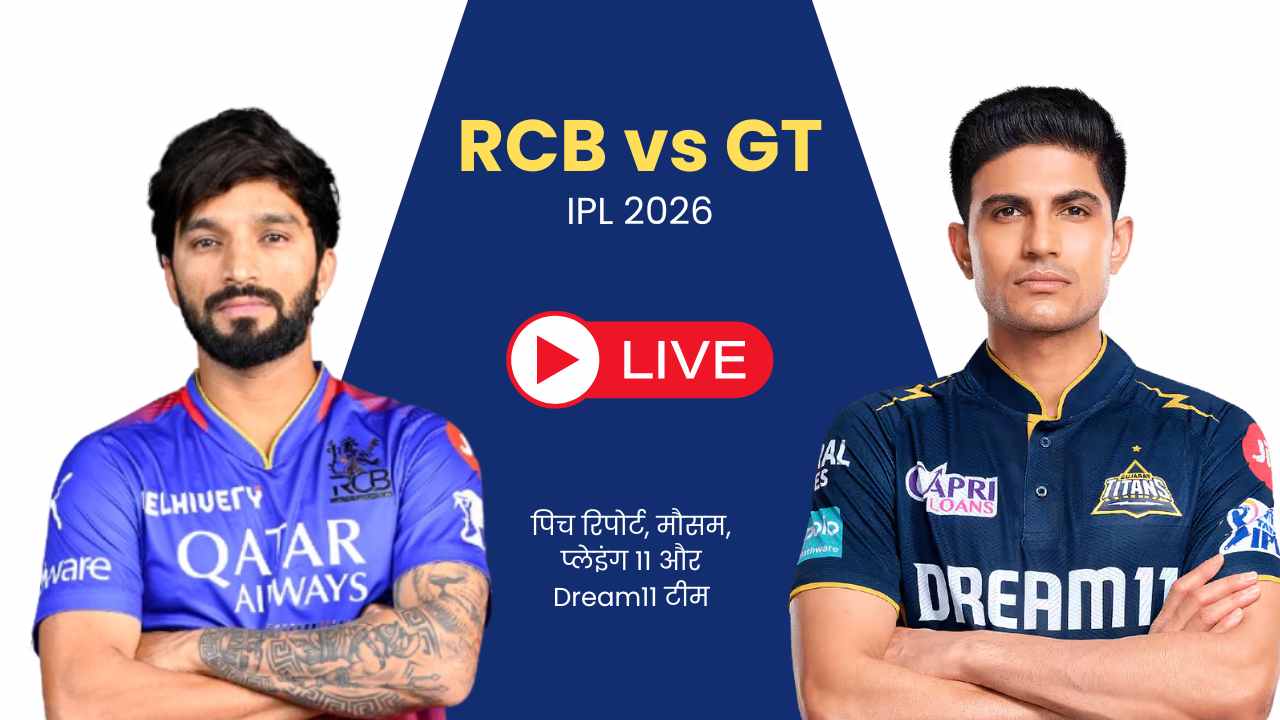 • RCB vs GT IPL 2026: पिच रिपोर्ट, मौसम, प्लेइंग 11 और Dream11 टीम
