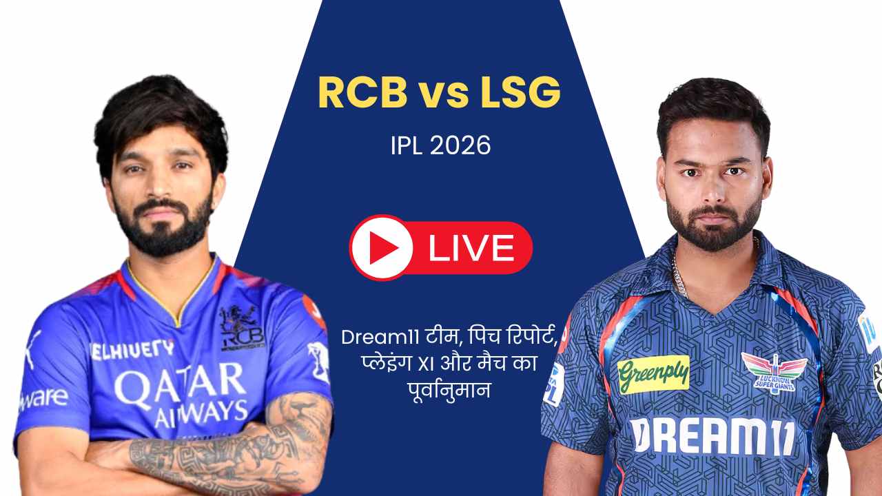 RCB vs LSG मैच प्रेडिक्शन IPL 2026: Dream11 टीम, पिच रिपोर्ट और प्लेइंग XI