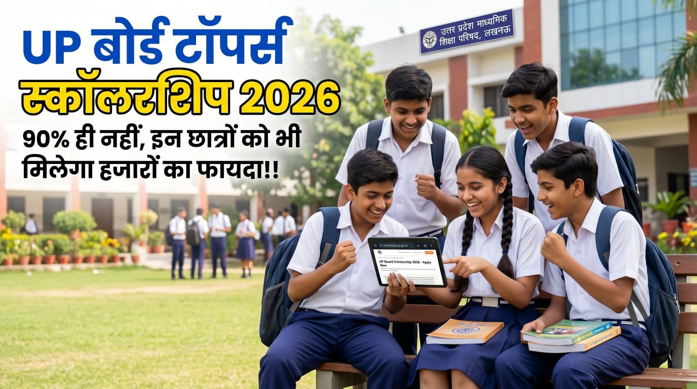 UP बोर्ड टॉपर्स स्कॉलरशिप 2026! हजारों रुपए की स्कॉलरशिप का फायदा, केवल 90% वाले ही नहीं इन छात्रों को भी मिलेगा स्कॉलरशिप का लाभ!!